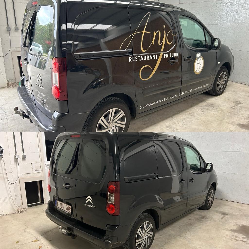De mooie glans hebben we terug voorzien door het polijsten van de wagen.