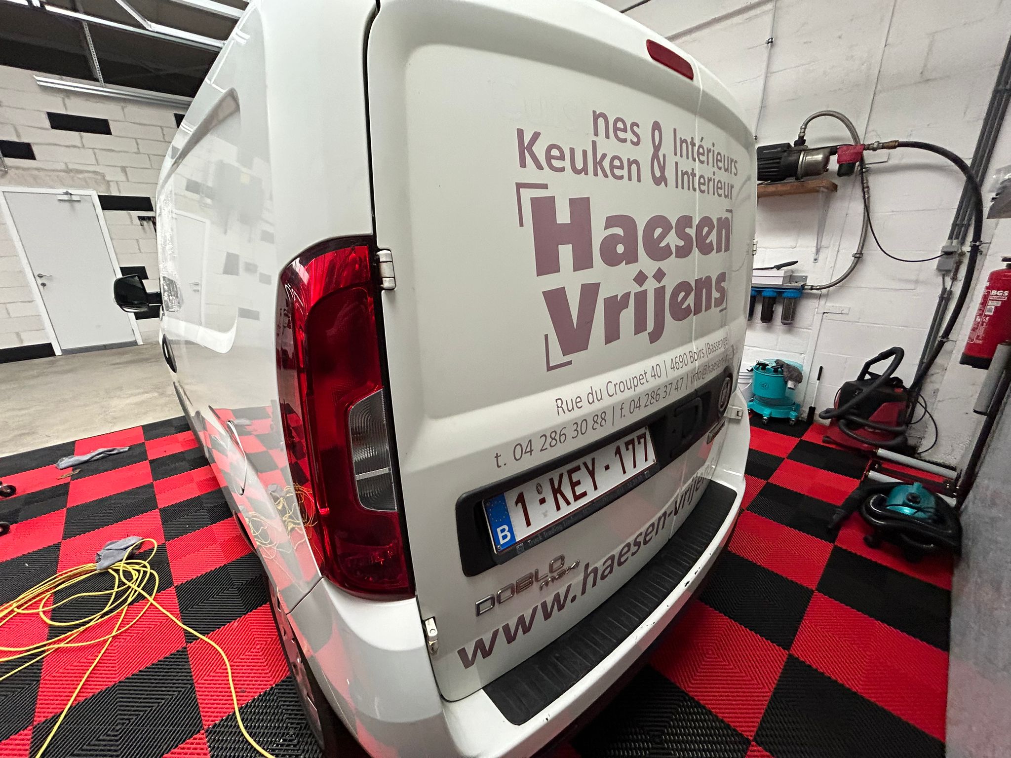Deze wagen is klaar om opnieuw te worden bestickerd.
