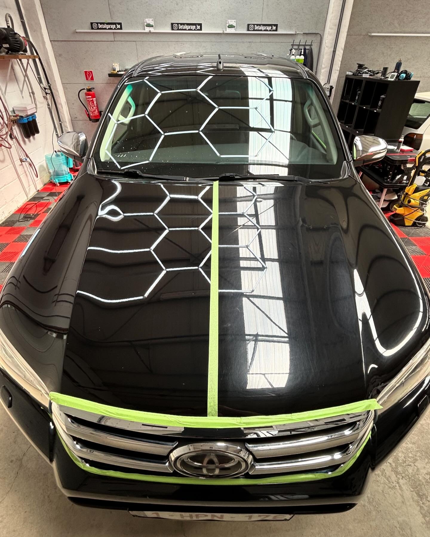 Deze splinternieuwe wagen werd voorzien van een polijstbehandeling in 1 stap om de fabriekskrasjes weg te werken.